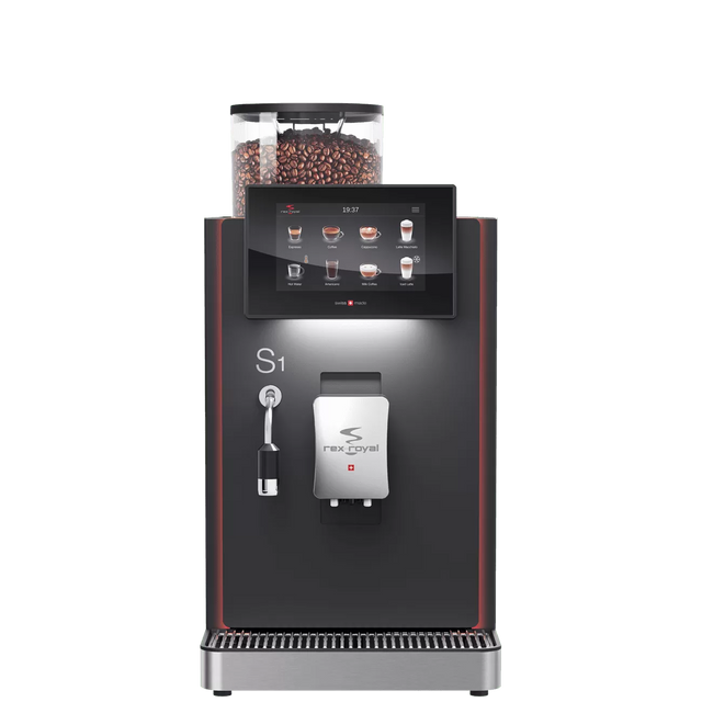 La S1 de Rex-Royal est la machine à café entièrement automatique, de haute qualité et compacte pour les applications professionnelles. Elle fournit des créations de boissons de premier ordre et convient parfaitement aux bureaux et aux espaces de co-travail. La S1 dispose d'une unité de percolation en métal robuste et durable.